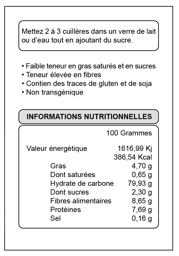 • 2 fois par jour, après vos repas. Mélangez 2 cuillères à soupe dans 400 ml de lait ou d’eau + sucre.